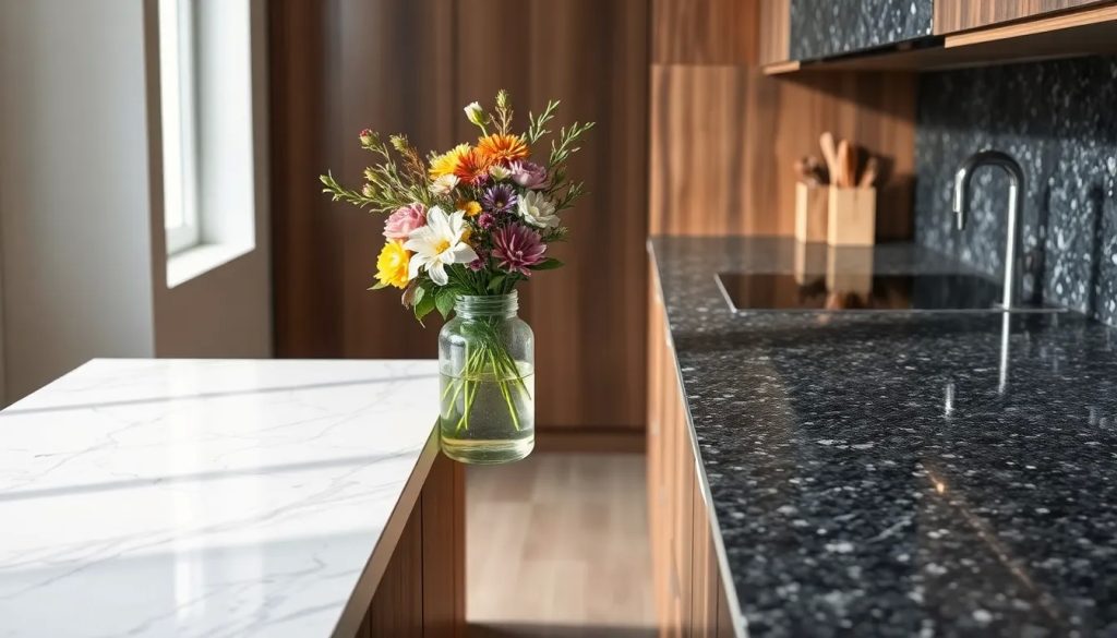- Granito: más duro, resistente a rayones y manchas.