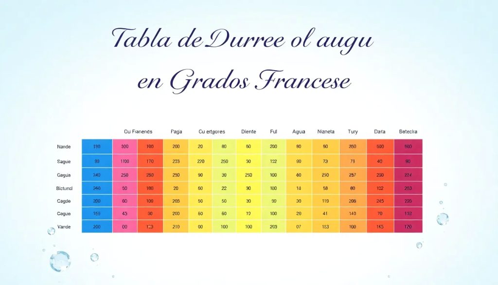 La tabla de dureza del agua en grados franceses es una herramienta útil para entender los niveles de dureza del agua. A continuación, se presenta un resumen de los rangos: